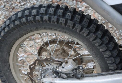 This type of hybrid tyre-ply technology has been tried before but we reckon it’s got potential for bikes like Beta’s Xtrainer and KTM’s Freeride. It wouldn’t be much fun in the depths of winter but we haven’t had much rain lately and the Mountain Hybrid has performed really well in the dry. Being road legal but with a two-ply tread, it offers a surprising level of traction for what appears to be a “dualsport” tyre. Wolter Kuiper